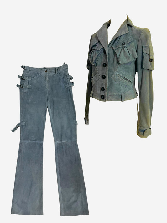 John Galliano, 2003, Suede Leather cargo Jacket and Pants