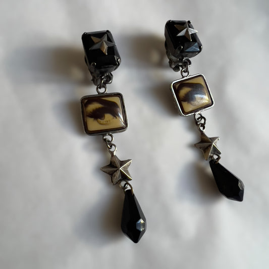 Jean Paul Gaultier Vintage Novelty "Eyes" Print Dangling Clip-On Earrings