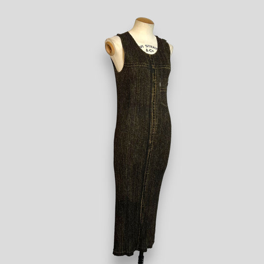 Issey Miyake Pleats Please Denim Pattern Long Dress (Polyester, Dark Blue Grey)
