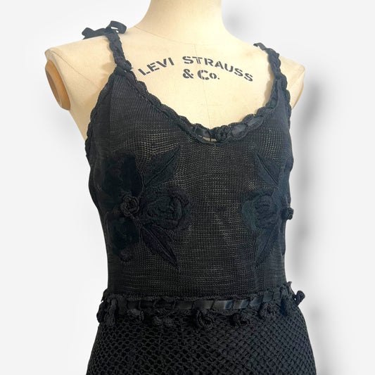 Moschino Cheap and Chic Black Crochet Mini Dress, 1990s