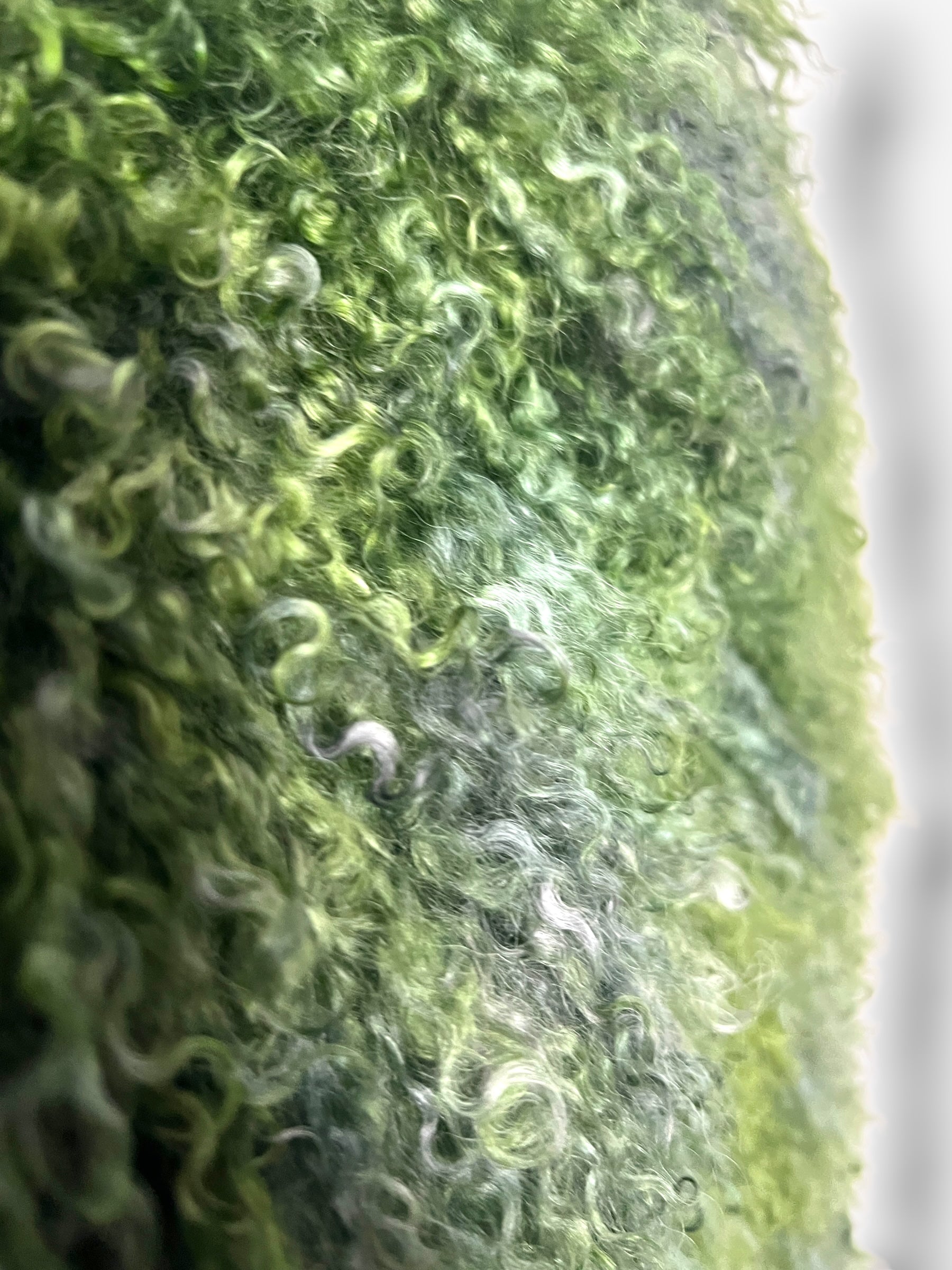 A striking piece from Armani Collezioni’s Fall/Winter 2001 collection, this coat is crafted from luxurious Australian shearling, dyed in rich green tones with subtle variations that create a natural, organic depth of color. The silhouette is relaxed yet glamorous, with a voluminous texture that adds both drama and warmth. Fully lined for comfort, it embodies Armani’s signature balance of modern sophistication and tactile richness.