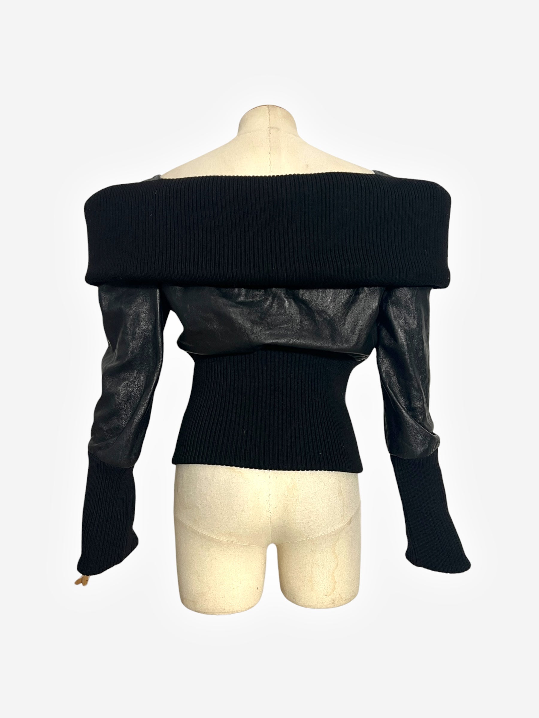 The jacket is in overall very good preloved condition, with no major flaws visible. The leather remains supple and the knit elements are well preserved.